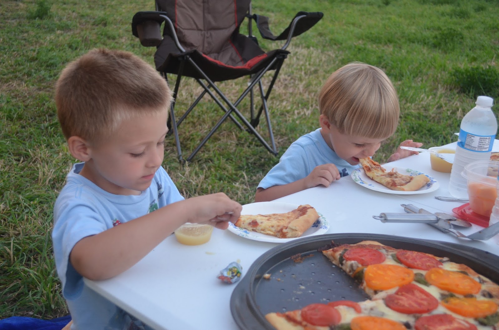 Tonight, the boys and I brought some homemade pizza out to Eric who was tearing down some old fencing and rotten tree stumps on the new property. We set up a little dinner table amidst the alfalfa and ate as a family, in a spot that will hopefully someday be an actual dining room in an actual house. Cinderella can have her castle. I'm loving every bit of this BIG dream that God created for me... and I'm along for the long haul.