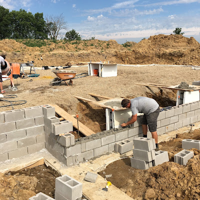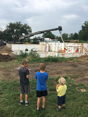 The past few weeks have been marked by frequent trips to our land, as the boys and I eagerly anticipate the progress Eric is making on building our house. Since I am not a home builder, I have no idea how much time it takes to complete any specific task. It's been three months since my husband broke ground, and I am still staring at invisible walls. My insightful, rational way of thinking placed me inside a discernible house with walls and a roof by the 4th of July (and I must add, if my husband worked at my pace and did it my way we would have no septic tank or plumbing anywhere in the house). Apparently there is a bit more to preparing the foundation than I ever realized.